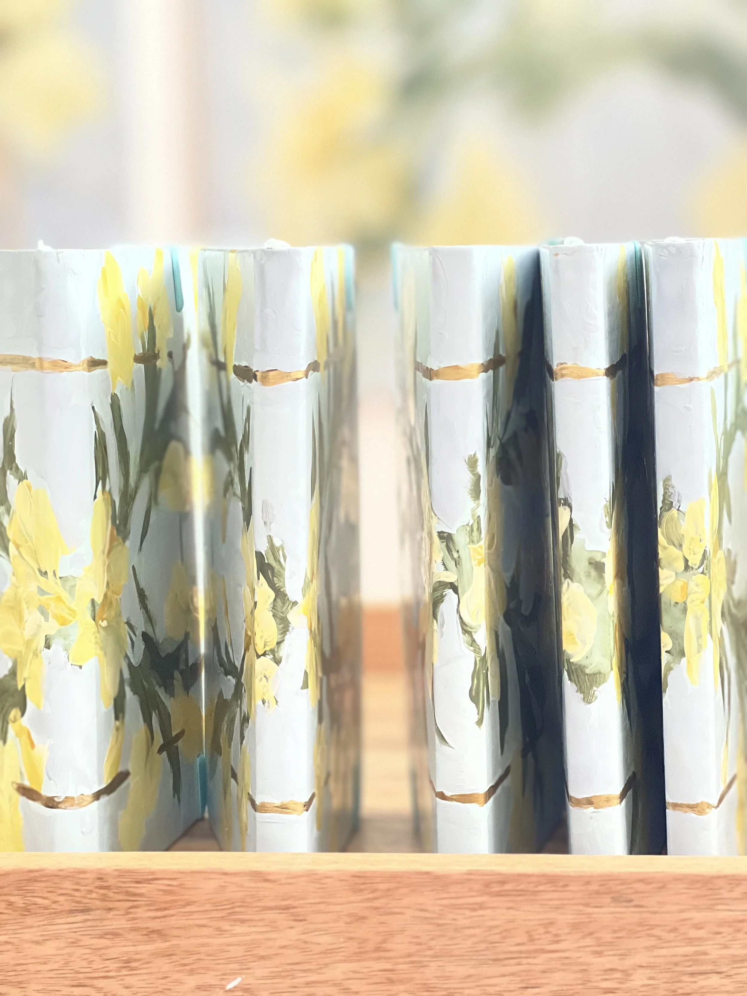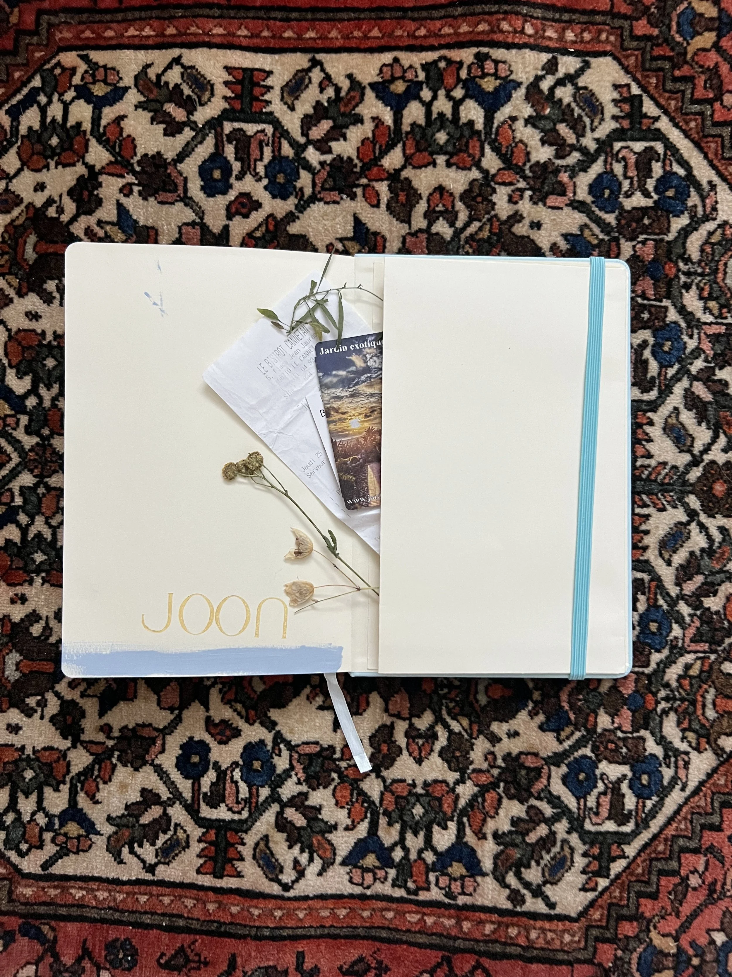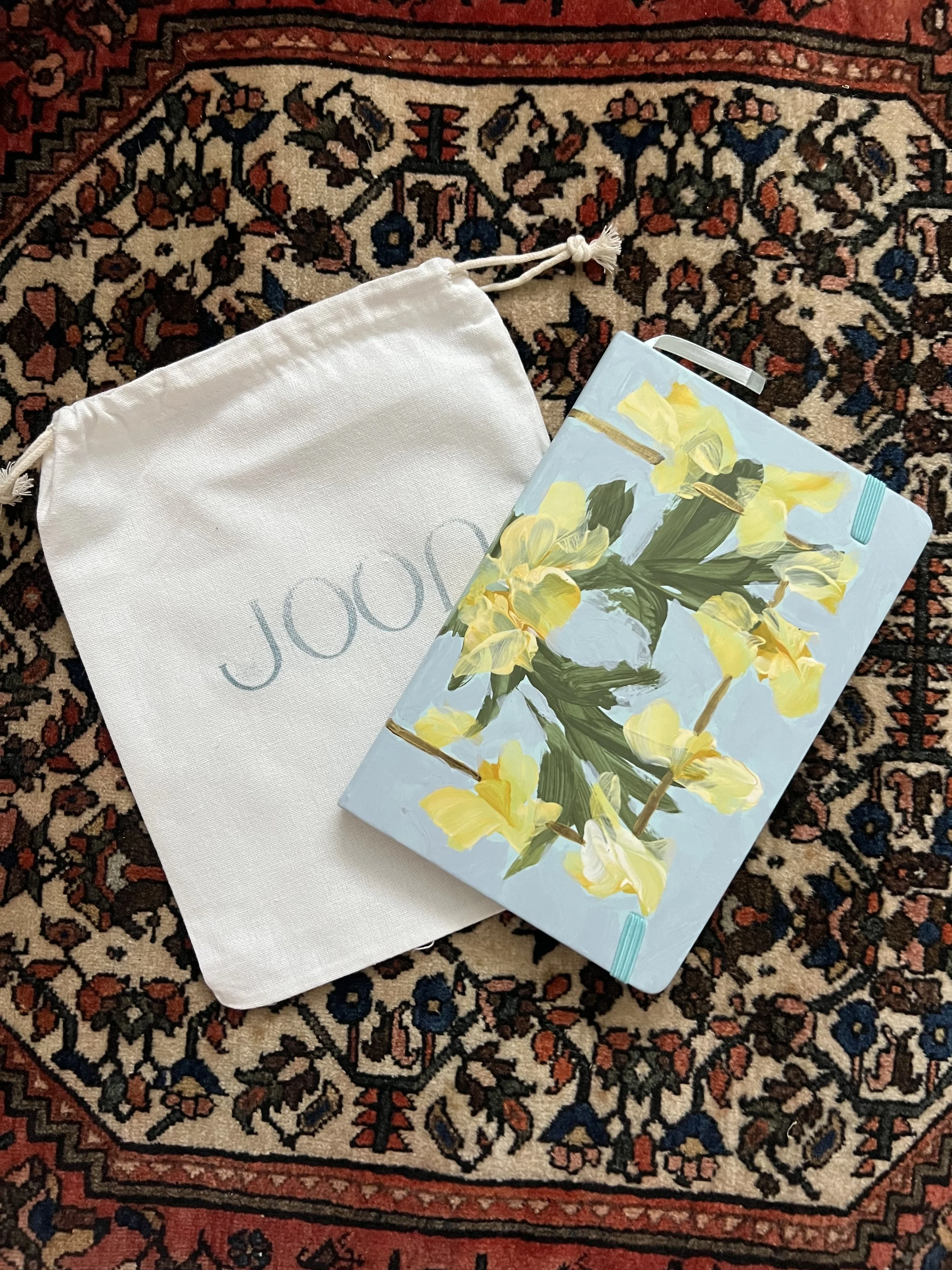 5.7" x 8.4" lined journals with ribbon place marker and pocket insert for souvenirs. Comes with protective muslin travel bag.